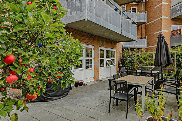 Stuelejlighederne har udgang til egen terrasse mens nogle af de øvrige lejligheder har en fin altan - dog ikke alle. Alle boliger har komfur og emhætte. Køleskab og opvaskemaskine skal lejer selv medbringe.
